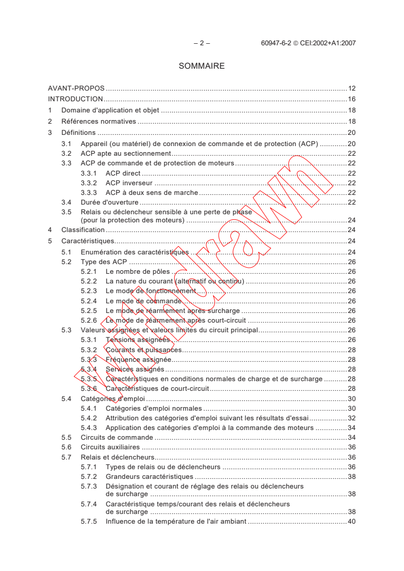 Appareillage à basse tension - Partie 6-2: Matériels à fonctions multiples - Appareils (ou matériel) de connexion de commande de protection (ACP)