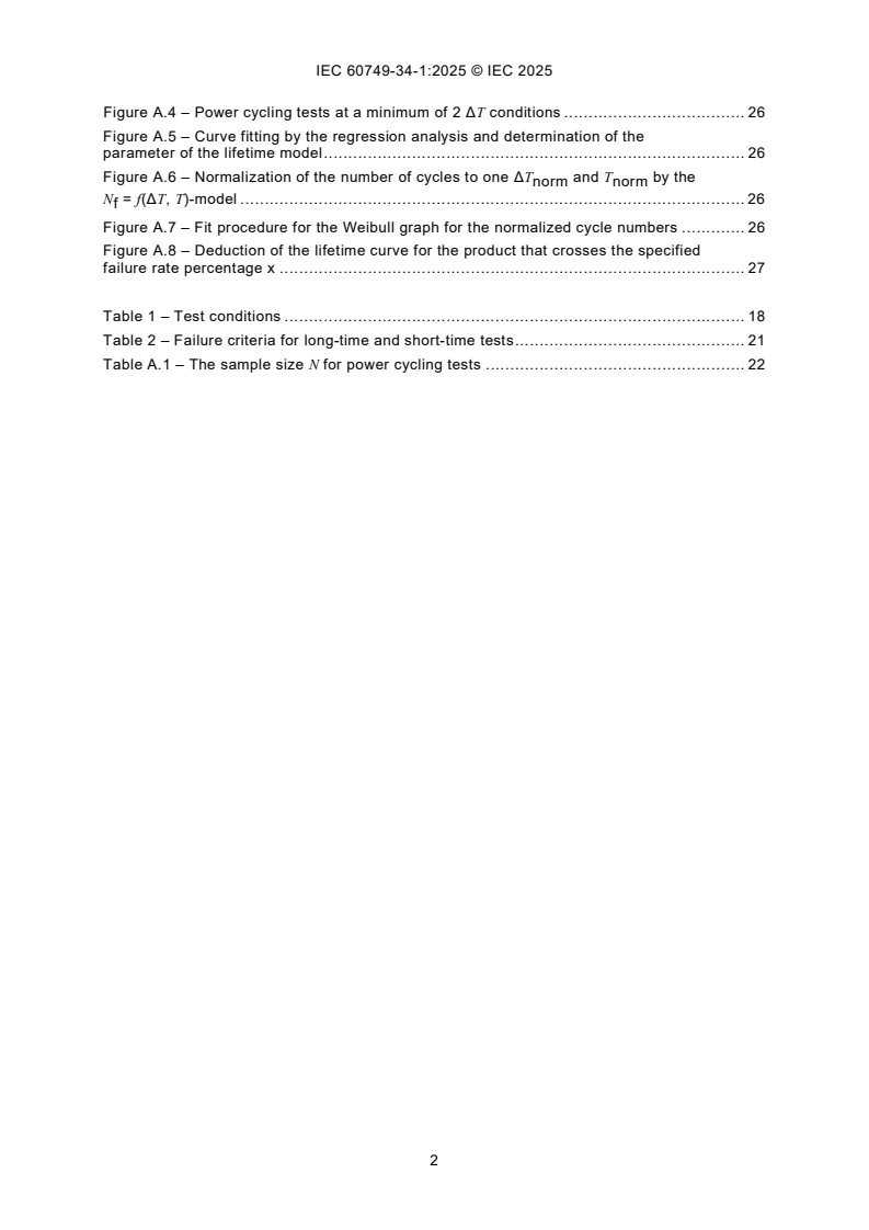 IEC 60749-34-1:2025 describes a test method that is used to determine the capability of power semiconductor modules to withstand thermal and mechanical stress resulting from cycling the power dissipation of the internal semiconductors and the internal connectors. It is based on IEC 60749-34, but is developed specifically for power semiconductor module products, including insulated-gate bipolar transistor (IGBT), metal-oxide-semiconductor field-effect transistor (MOSFET), diode and thyristor. If there is a customer request for an individual use or an application specific guideline (for example ECPE Guideline AQG 324), details of the test method can be based on these requirements if they deviate from the content of this document. This test caused wear-out and is considered destructive.