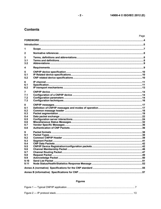 ISO/IEC 14908-4:2011 specifies the transporting of the Control Network Protocol (CNP) packets for commercial local area control networks over Internet Protocol (IP) networks using a tunnelling mechanism wherein the CNP packets are encapsulated within IP packets. It applies to both CNP nodes and CNP routers.