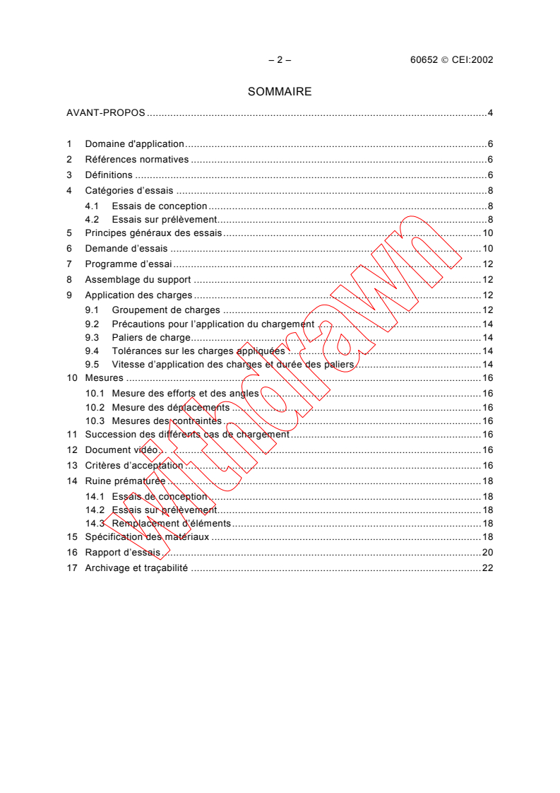 Applicable aux essais de pylônes et structures des lignes aériennes pour tensions supérieures à 45 kV. Codifie les méthodes d'essai.