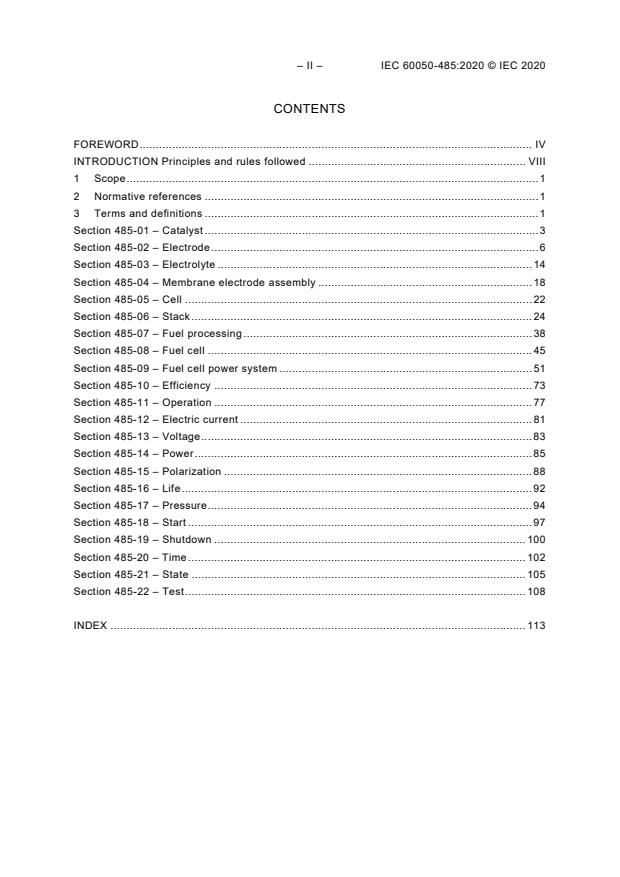 IEC 60050-485:2020 covers a wide range of terms and definitions essential for understanding and working with fuel cell technologies. The key topics include:
