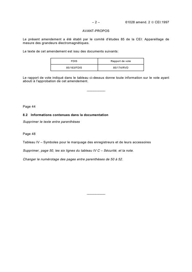 Amendement 2 - Appareils électriques de mesure - Enregistreurs X-Y