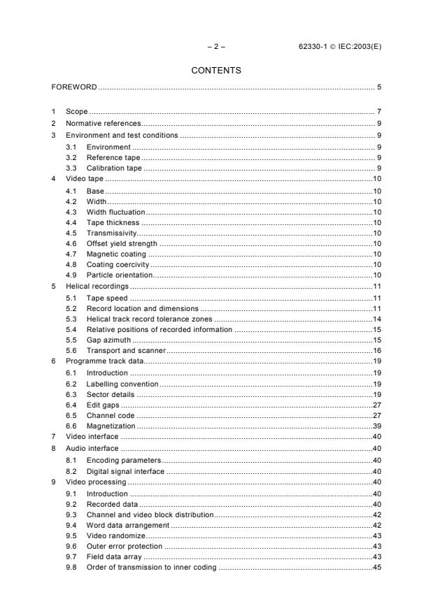 IEC 62330-1:2003 specifies VTR requirements for the HD‑D5 helical‑scan digital video cassette format using 12,65 mm (0.5 in) magnetic tape. Part 1 defines the content, format and recording methods for helical records that carry HD compressed video, multi‑channel audio and associated data (as defined further in Part 2 and Part 3). The standard covers longitudinal records (tracking, cue audio, time and control code) and supports one HD compressed video channel plus four independent audio channels, each intended for independent editing. Targeted HD signals include 1080/59.94i and 720/59.94p.