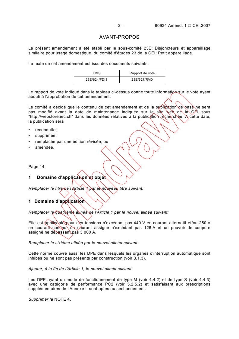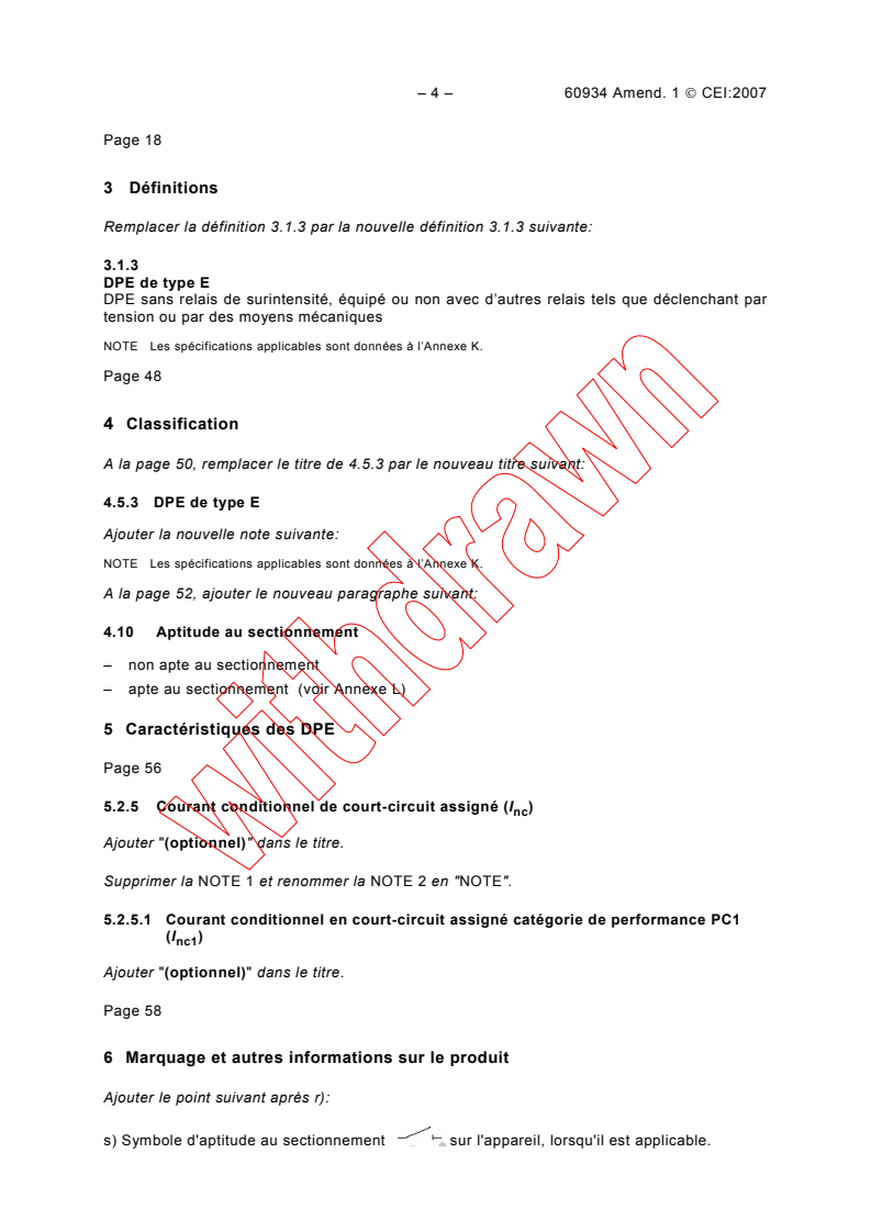 Amendement 1 - Disjoncteurs pour équipement (DPE)