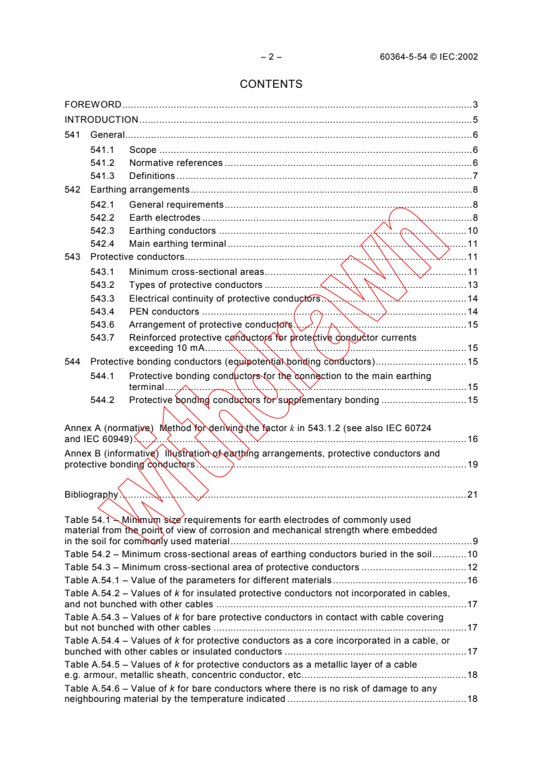 IEC 60364-5-54:2002 - Electrical installations of buildings - Part 5-54: Selection and erection of electrical equipment - Earthing arrangements, protective conductors and protective bonding conductors Released:6/14/2002