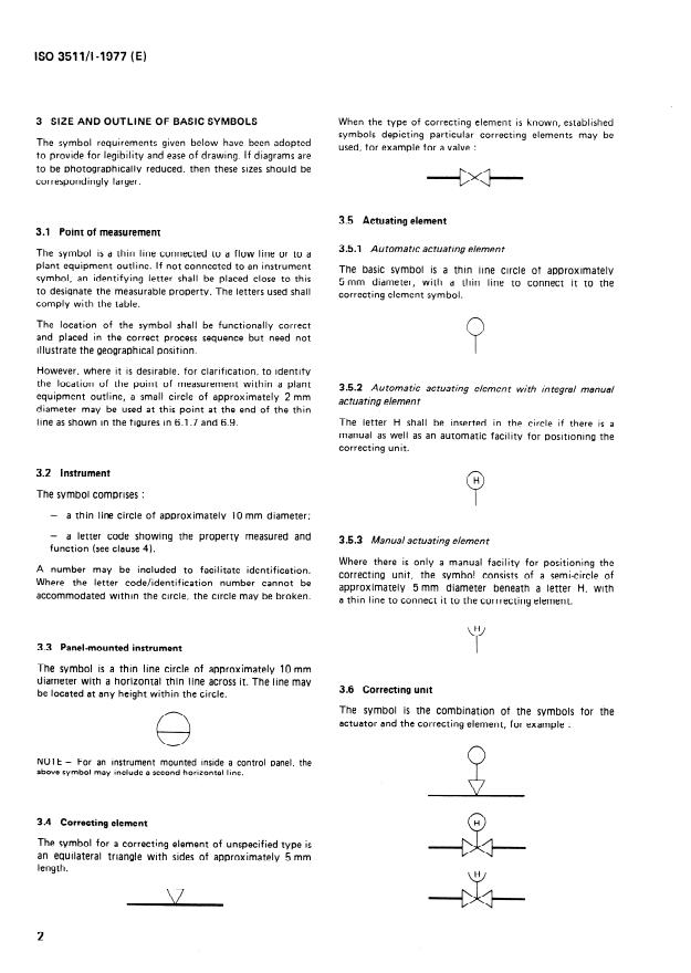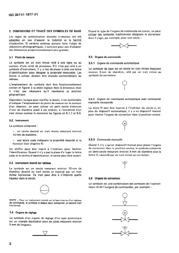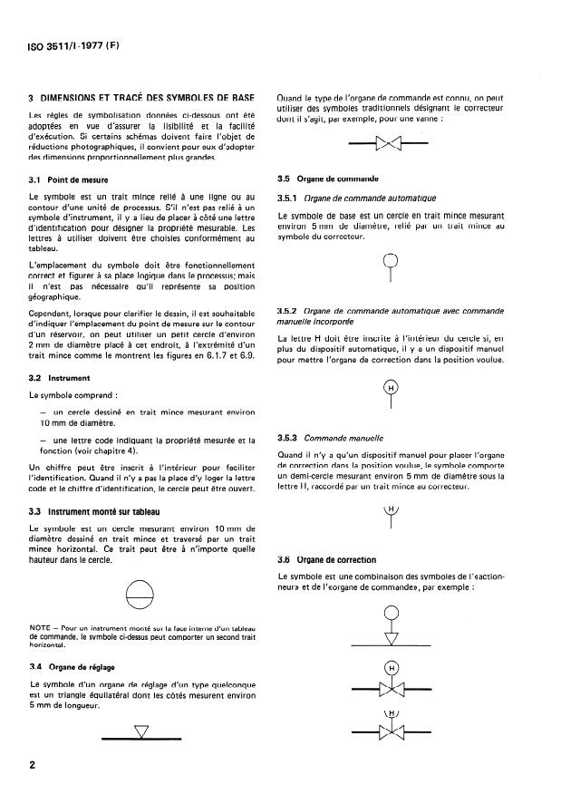 ISO 3511-1:1977 is a standard published by the International Organization for Standardization (ISO). Its full title is "Process measurement control functions and instrumentation - Symbolic representation - Part 1: Basic requirements". This standard covers: Forms one part of four which provide a universal means of communication between the various interests involved in the design, manufacture, installation and operation of measurement and control equipment used in the process industries. This part establishes a symbols system for use in depicting the basic functions. The system has been limited to the identification of instrument functions and does not provide means of illustrating specific instruments. The definitions are used solely for the purpose of application and understanding of the symbol system.