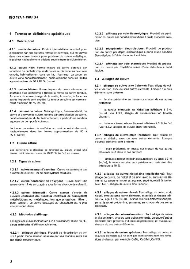 ISO 197-1:1983 - Cuivre et alliages de cuivre -- Termes et définitions