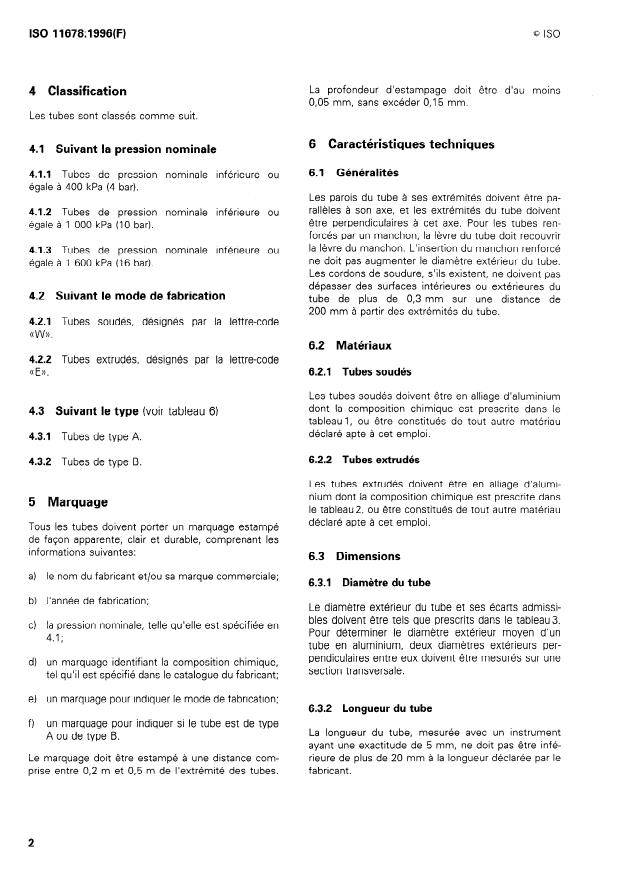 4.2.2 Tubes extrudés, désignés par la lettre-code