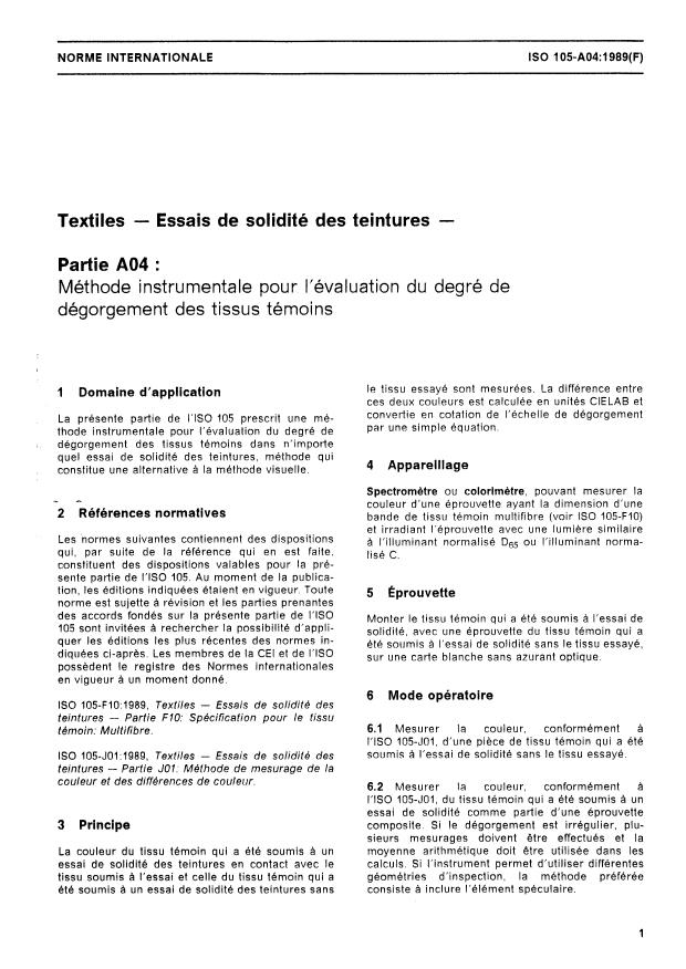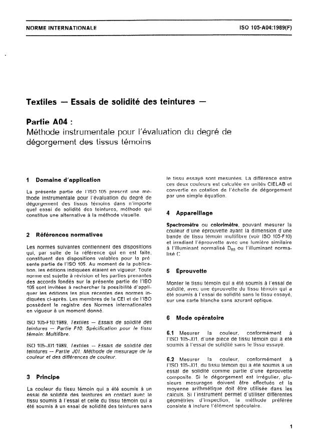 ISO 105-A04:1989 - Textiles -- Essais de solidité des teintures