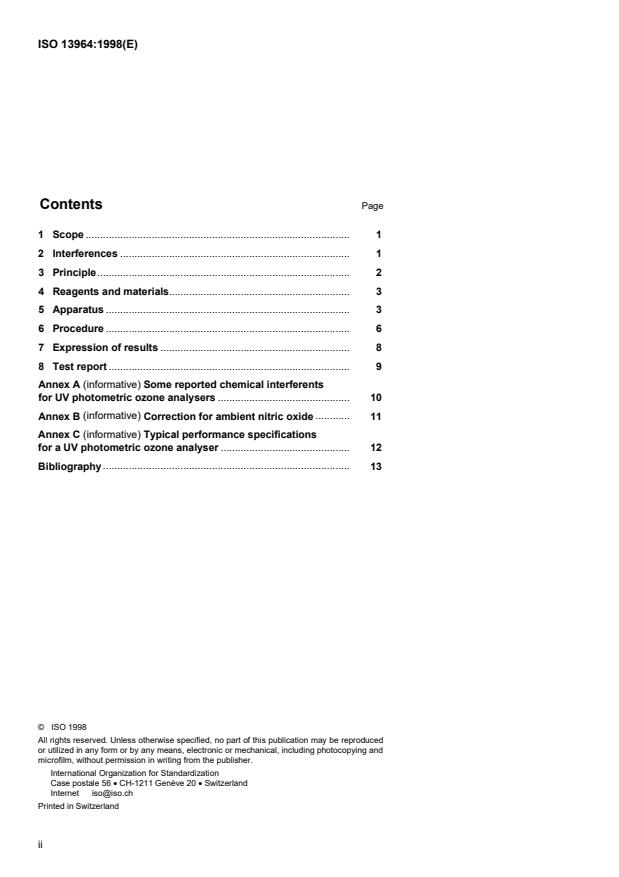Keywords: ISO 13964, ozone determination, ultraviolet photometric method, ambient air, UV photometric ozone analyser, ozone monitoring, air quality standard, calibration, interferences.