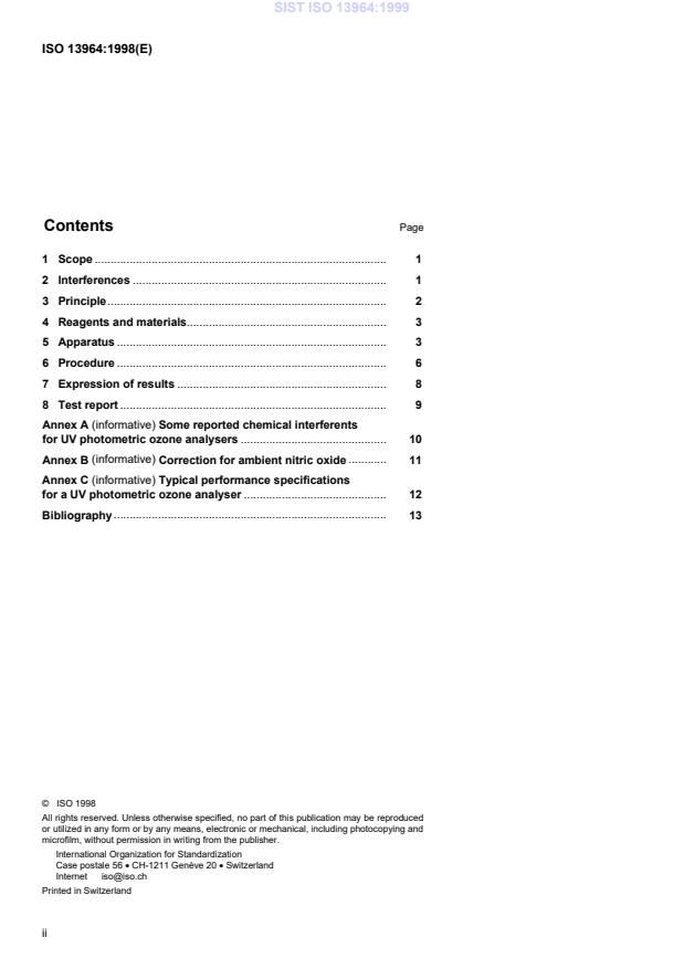 ISO 13964:1998 is a standard published by the International Organization for Standardization (ISO). Its full title is "Air quality - Determination of ozone in ambient air - Ultraviolet photometric method". This standard covers: Air quality - Determination of ozone in ambient air - Ultraviolet photometric method