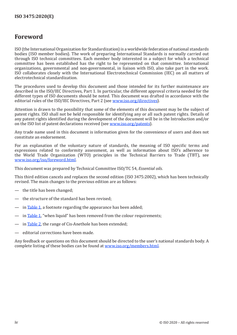 ISO 3475:2020 - Essential oil of aniseed (Pimpinella anisum L.) Released:2/12/2020