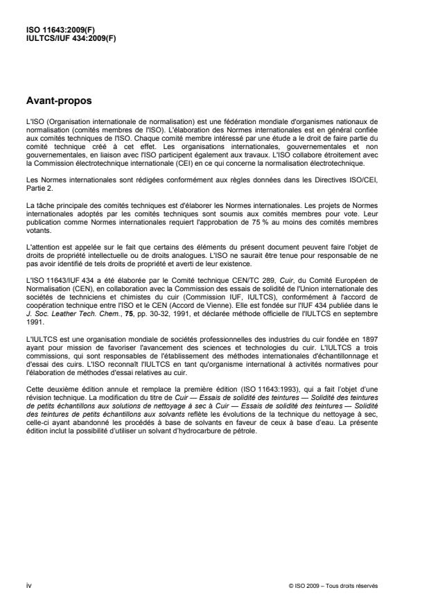 L'ISO 11643/IUF 434 a été élaborée par le Comité technique CEN/TC 289, Cuir, du Comité Européen de