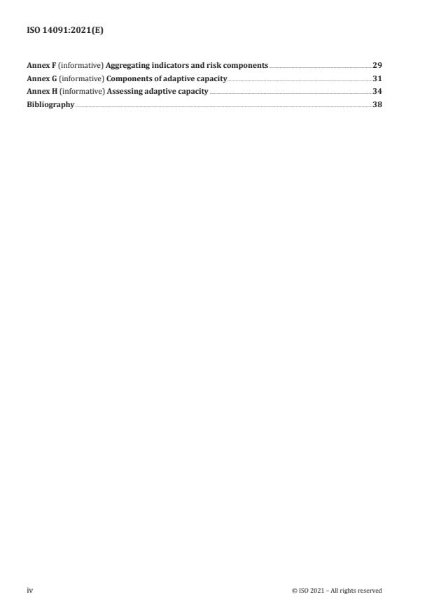 ISO 14091:2021 focuses on systematic, documented approaches rather than prescriptive methods. Major technical topics include: