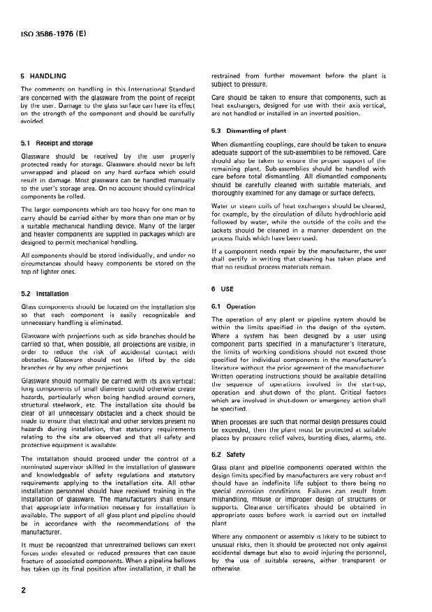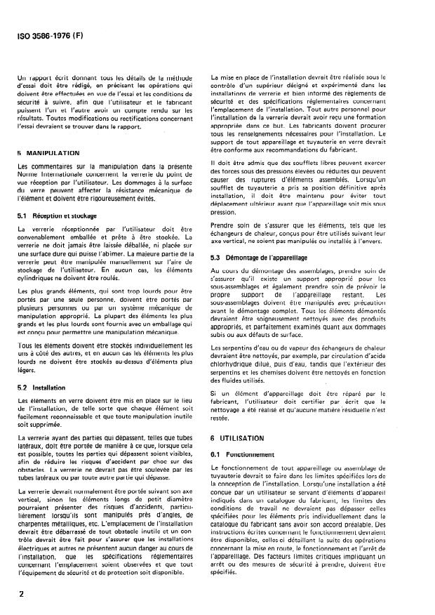 ISO 3586:1976 - Glass plant, pipeline and fittings -- General rules for testing, handling and use