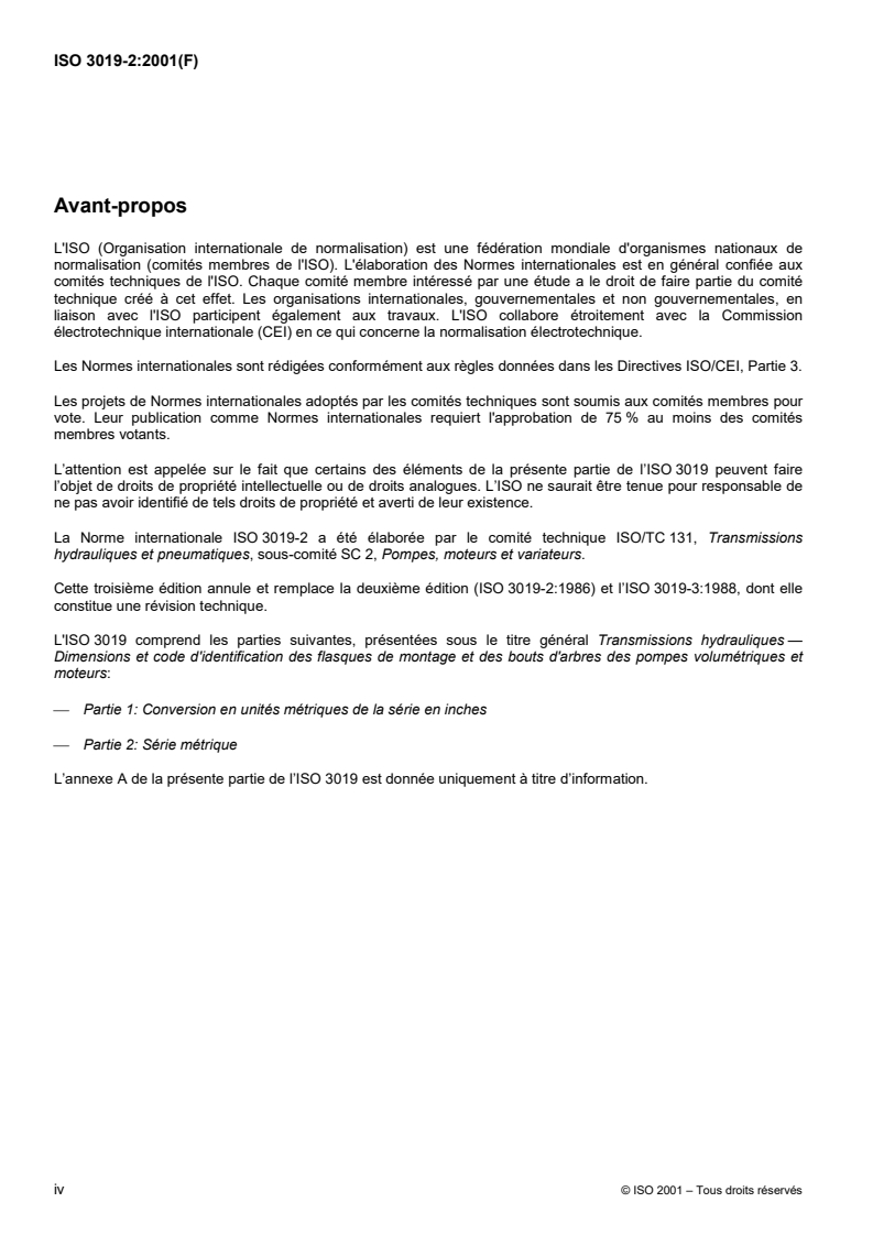 Keywords: ISO 3019-2, hydraulic fluid power, mounting flanges, shaft ends, metric series, identification code, displacement pumps, hydraulic motors, flange dimensions, spline, keyed shaft.