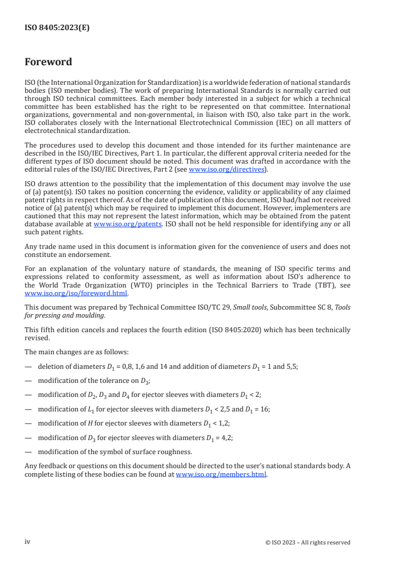 ISO 8405:2023 - Tools for moulding — Ejector sleeves with cylindrical head — Basic series for general purposes Released:16. 11. 2023