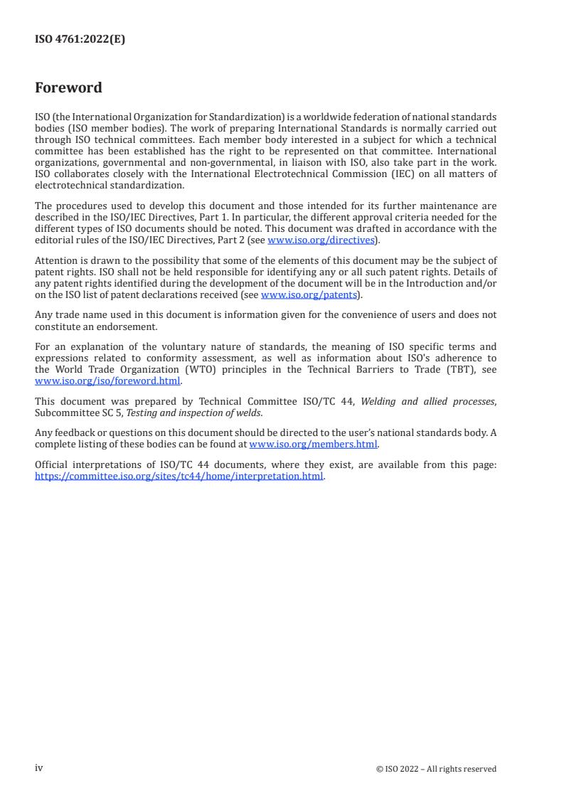 ISO 4761:2022 - Non-destructive testing of welds — Phased array ultrasonic testing (UT-PA) for thin-walled steel components — Acceptance levels Released:2/9/2022