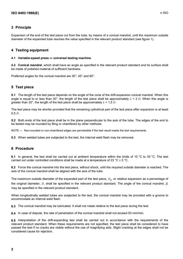 Keywords: ISO 8493:1998, drift-expanding test, tube testing, metallic materials, mandrel, tube ductility test, tube expansion.