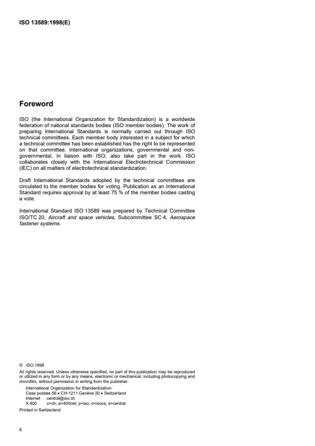 ISO 13589:1998 is a standard published by the International Organization for Standardization (ISO). Its full title is "Aerospace - Nuts, bihexagonal, self-locking, with counterbore and MJ threads, classifications: 1 100 MPa (at ambient temperature)/425 degrees C, 1 100 MPa (at ambient temperature)/650 degrees C, 1 210 MPa (at ambient temperature)/425 degrees C, 1 210 MPa (at ambient temperature)/730 degrees C, 1 550 MPa (at ambient temperature)/235 degrees C, 1 550 MPa (at ambient temperature)/425 degrees C and 1 550 MPa (at ambient temperature)/600 degrees C - Dimensions". This standard covers: Aerospace - Nuts, bihexagonal, self-locking, with counterbore and MJ threads, classifications: 1 100 MPa (at ambient temperature)/425 degrees C, 1 100 MPa (at ambient temperature)/650 degrees C, 1 210 MPa (at ambient temperature)/425 degrees C, 1 210 MPa (at ambient temperature)/730 degrees C, 1 550 MPa (at ambient temperature)/235 degrees C, 1 550 MPa (at ambient temperature)/425 degrees C and 1 550 MPa (at ambient temperature)/600 degrees C - Dimensions