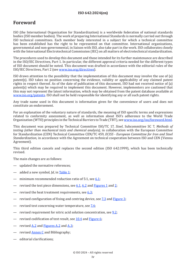 ISO 642:2024 is classified under the following ICS (International Classification for Standards) categories: 77.040.99 - Other methods of testing of metals. The ICS classification helps identify the subject area and facilitates finding related standards.