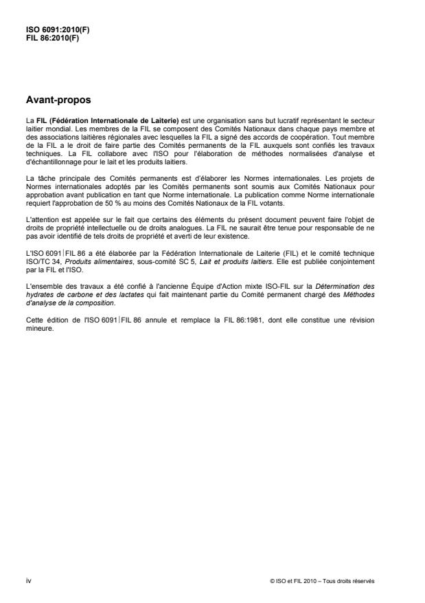 Cette édition de l'ISO 6091⎪FIL 86 annule et remplace la FIL 86:1981, dont elle constitue une révision