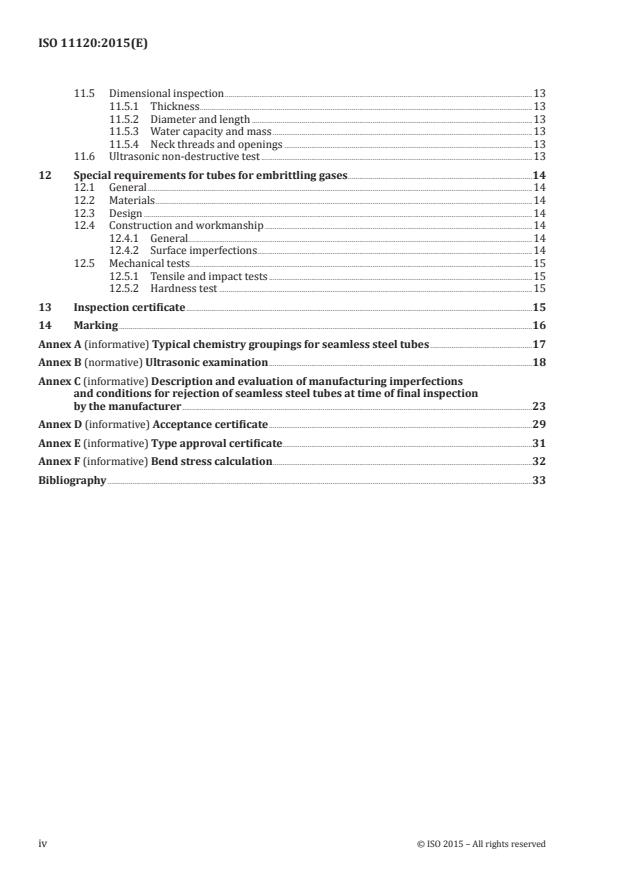 Keywords: ISO 11120:2015, gas cylinders, refillable seamless steel tubes, design, construction, testing, compressed gases, liquefied gases, ultrasonic examination, hydraulic test, type approval.