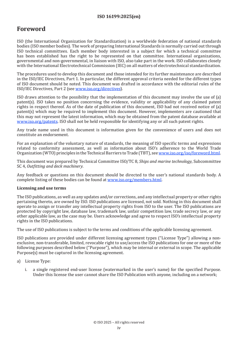 ISO 16199:2025 is classified under the following ICS (International Classification for Standards) categories: 47.020.50 - Deck equipment and installations. The ICS classification helps identify the subject area and facilitates finding related standards.