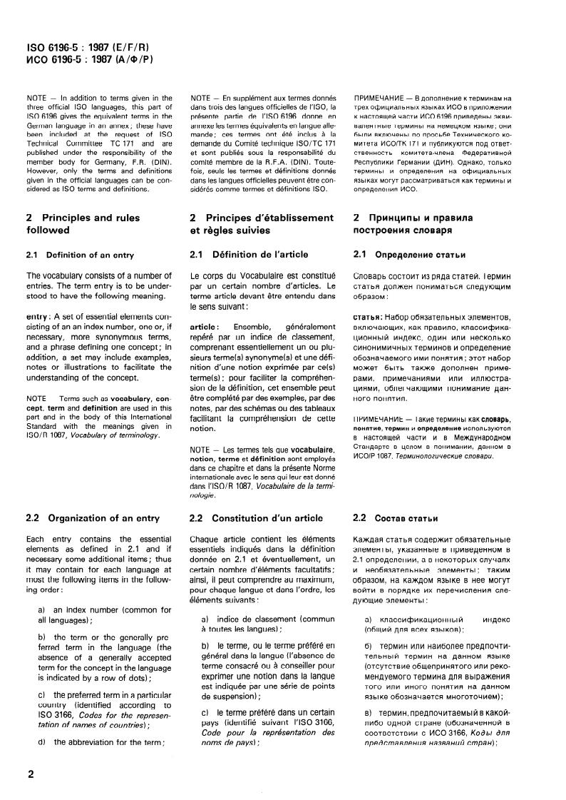 - Terminology principles: Entries follow ISO terminology practice (reference to ISO/R 1087) and include qualifiers (e.g., “deprecated term”, grammatical form, field of application) to guide correct use.