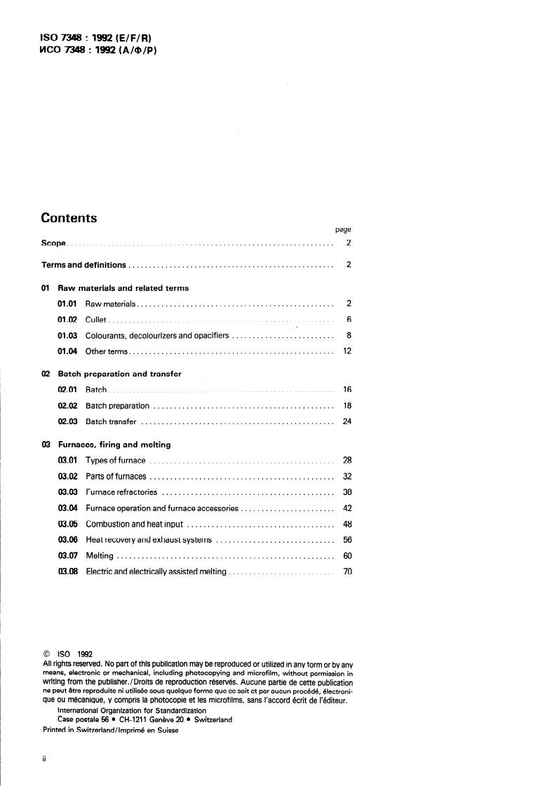 Keywords: ISO 7348:1992, glass containers vocabulary, glass manufacturing terms, glass industry glossary, annealing, furnaces, batch preparation, quality assurance.