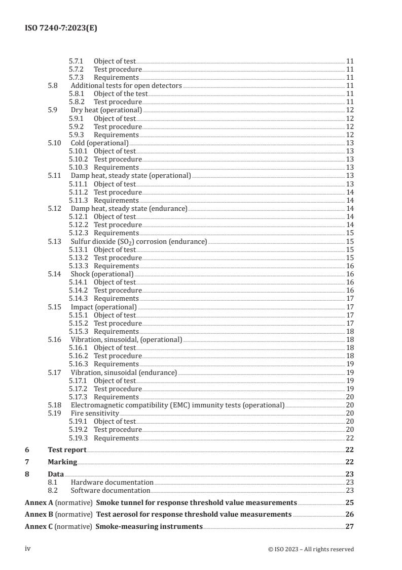 Keywords: ISO 7240-7, point-type smoke detectors, scattered light, transmitted light, ionization, fire detection and alarm systems, smoke detector testing, performance criteria, EMC immunity.