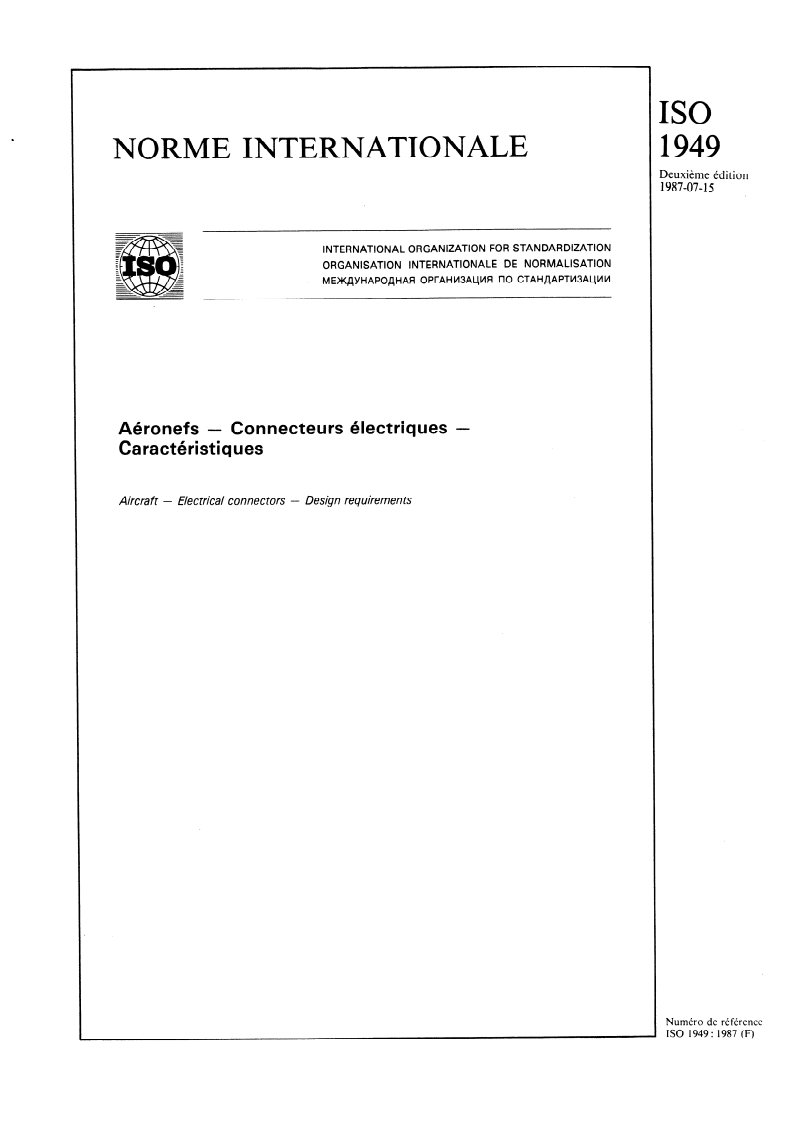 ISO 1949:1987 - Aircraft — Electrical connectors — Design requirements/9/1987