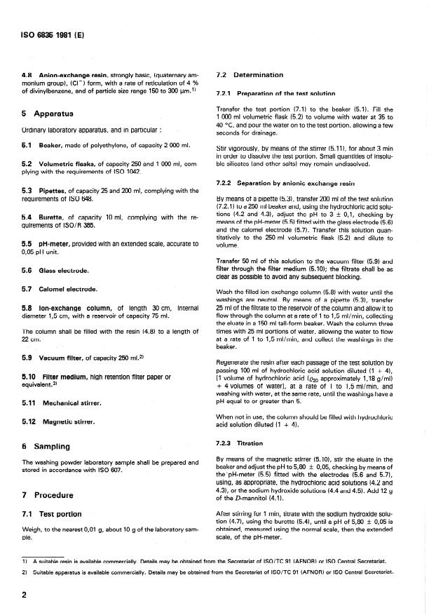 Keywords: ISO 6835, boron content, washing powders, titrimetric method, boric acid‑mannitol complex, anion‑exchange resin, detergent analysis, surface active agents.