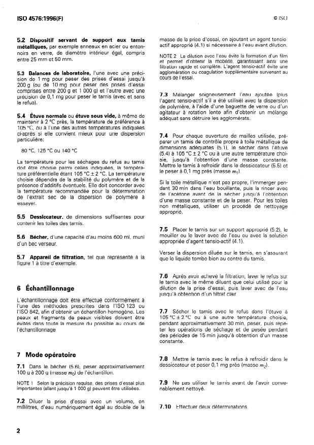 ISO 4576:1996 - Plastiques -- Dispersions de polymeres -- Détermination du résidu par tamisage (teneur en grains et en coagulum)