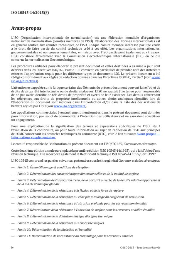 Cette deuxième édition annule et remplace la première édition (ISO 10545-14:1995), qui a fait l’objet d’une