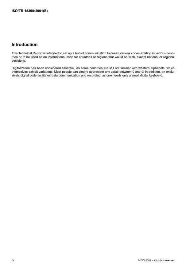 ISO/TR 15300:2001 is a technical report published by the International Organization for Standardization (ISO). Its full title is "Dentistry - Application of OSI clinical codification to the classification and coding of dental products". This standard covers: The purpose of this Technical Report is to provide possible application of ISO/TR 13668 regarding the coded communication related to dental products, resulting in the numerous advantages of a single, standardized "hub" for the interoperability of present or future codes.