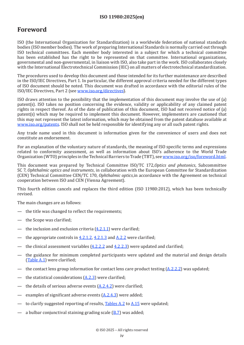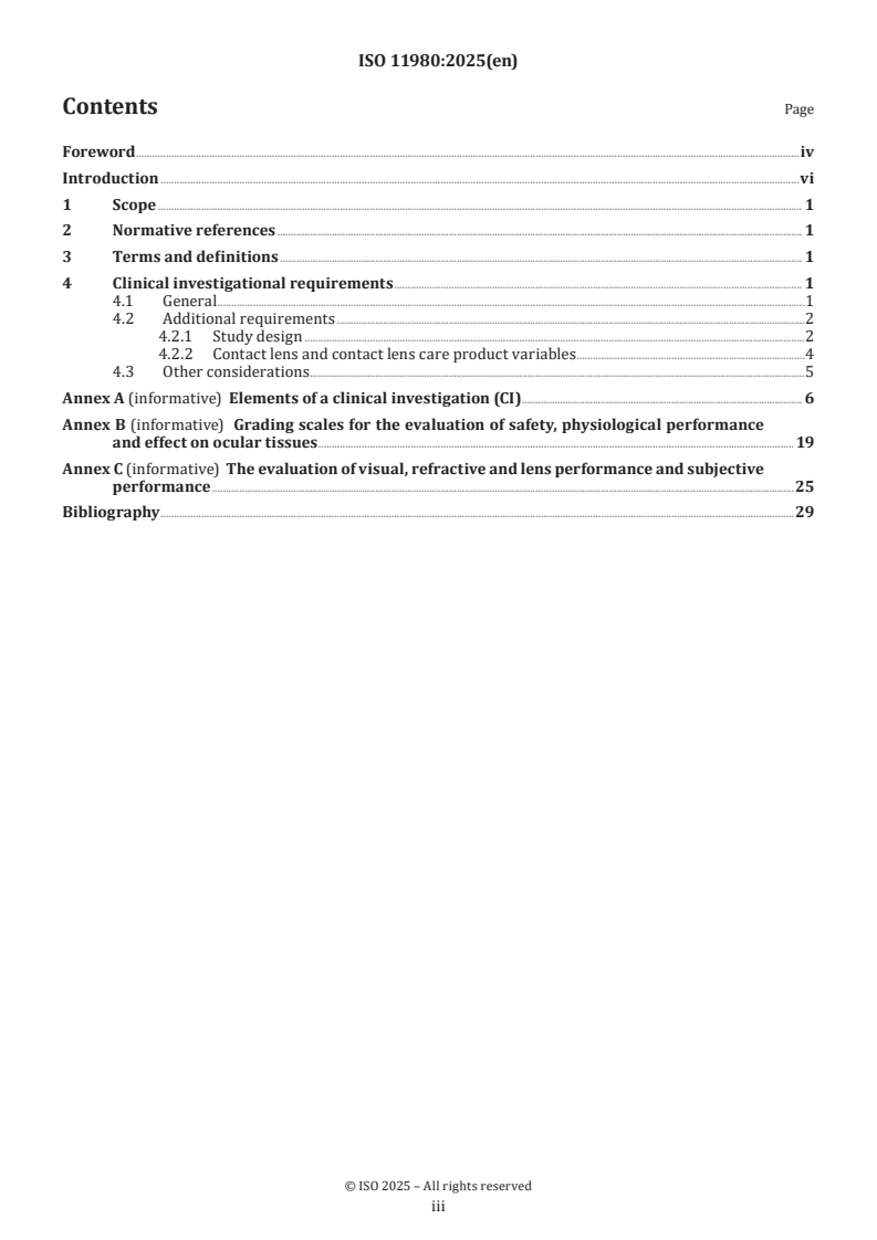 Keywords: ISO 11980:2025, clinical investigation, contact lenses, contact lens care products, clinical investigation plan (CIP), safety and performance, clinical trials, study design, statistical analysis plan, visual acuity.