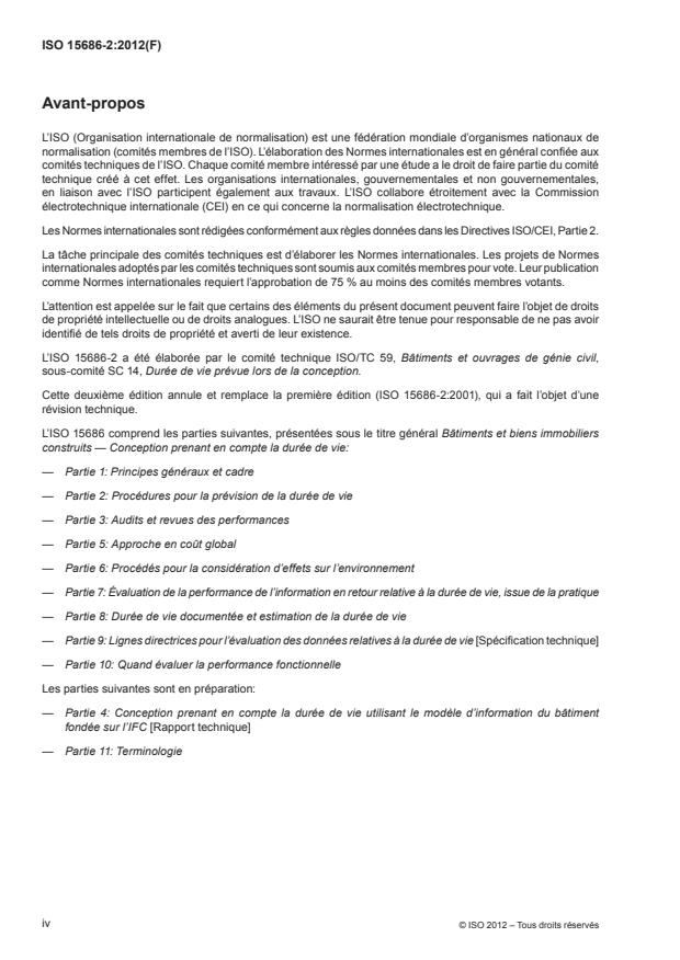ISO 15686-2:2012 - Bâtiments et biens immobiliers construits -- Conception prenant en compte la durée de vie