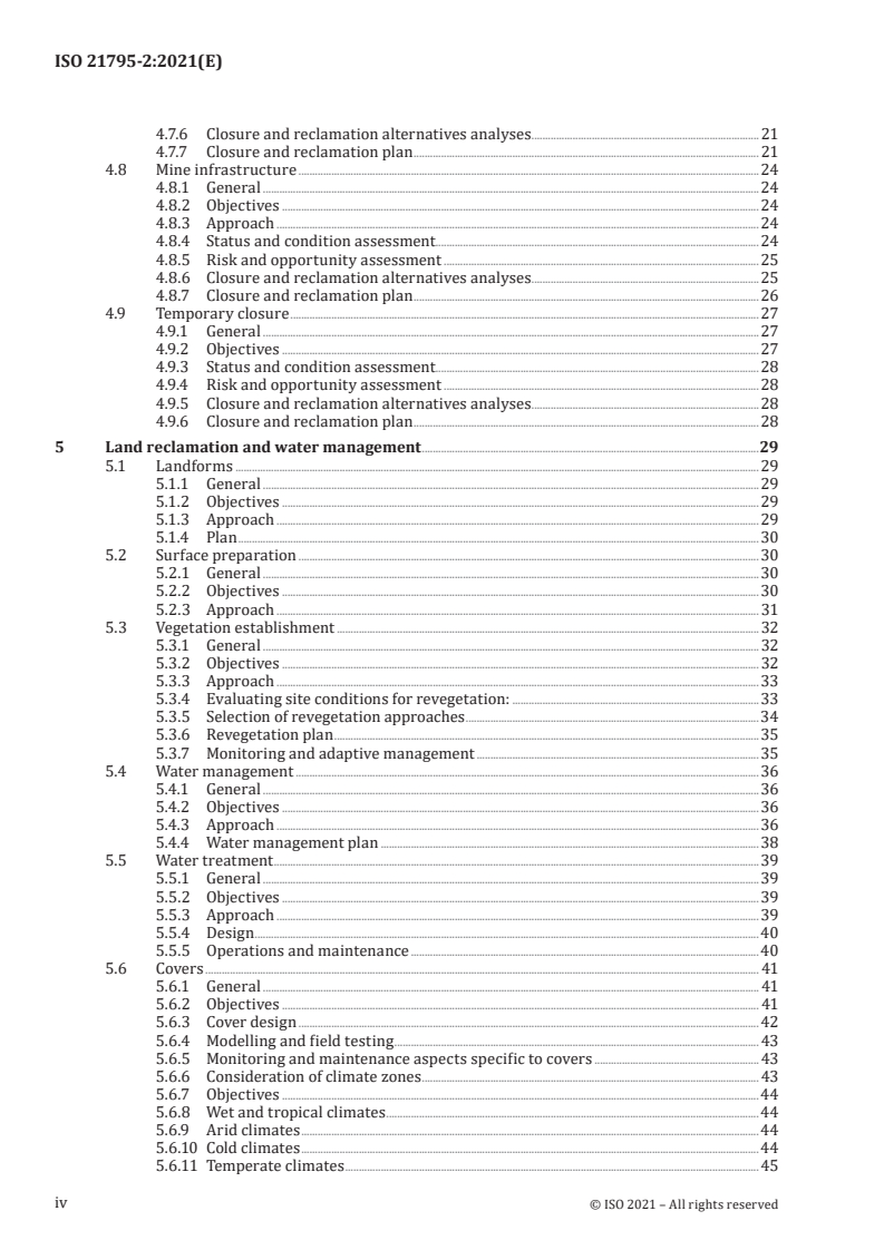 - ISO 14001 (environmental management systems) and national regulations for mine closure are commonly used alongside ISO 21795‑2 to ensure regulatory compliance and integrated environmental management.