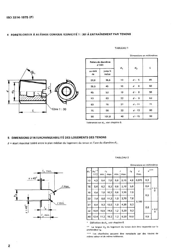 ISO 3314:1975 - Forets creux a alésage conique (conicité 1 : 30) a entraînement par tenons