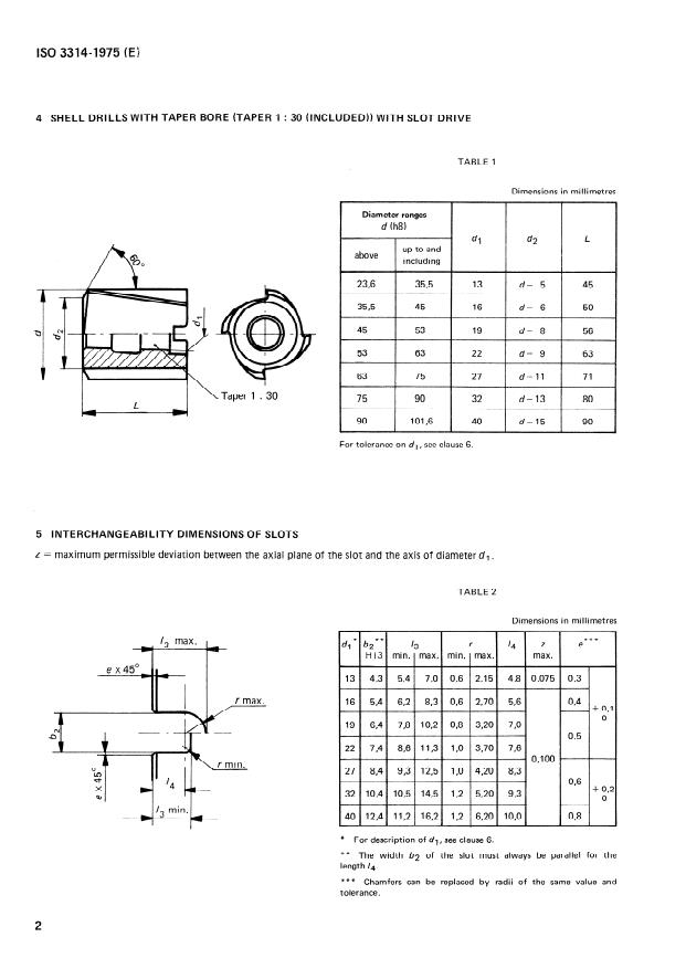 Keywords: ISO 3314:1975, shell drills, taper bore 1:30, slot drive, dimensions, ISO 2402, ISO 235-1, metric shell drills, taper plug gauge, interchangeability.
