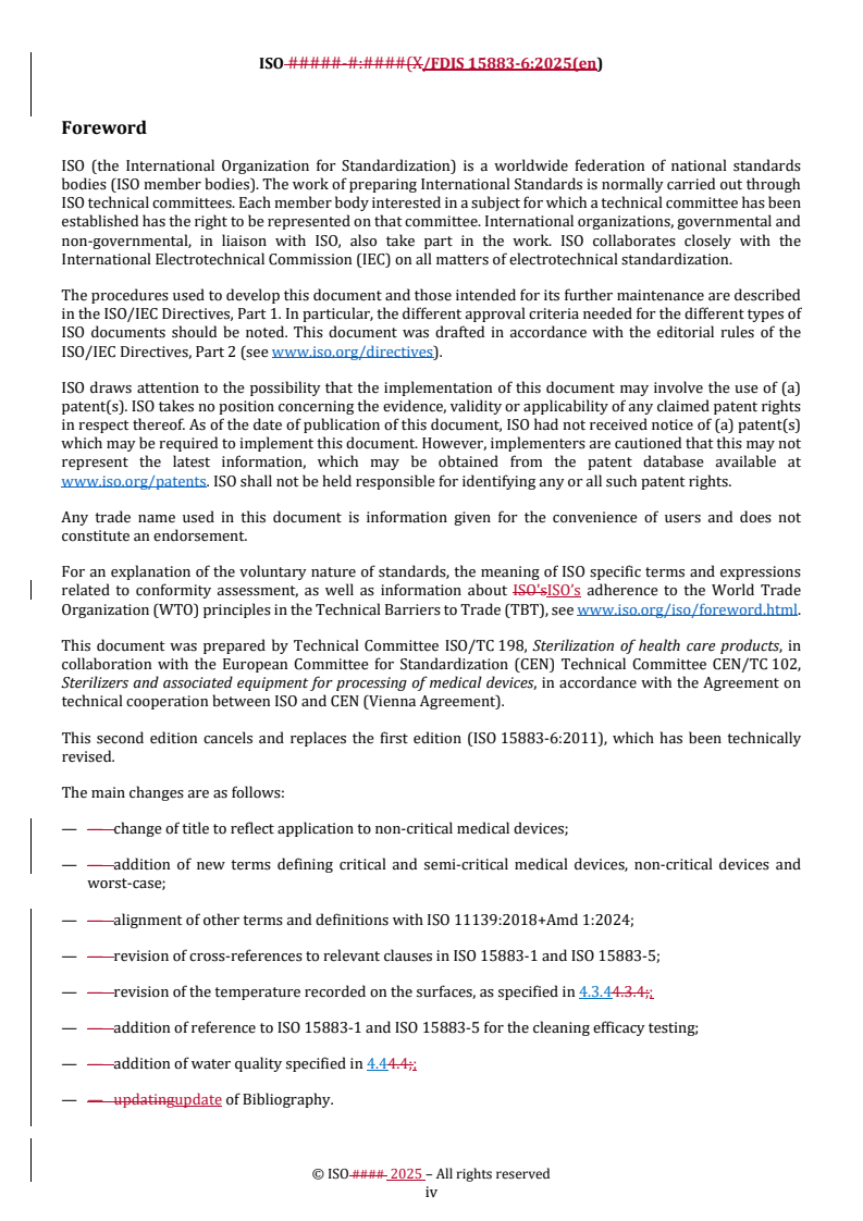 REDLINE ISO/FDIS 15883-6 - Washer-disinfectors — Part 6: Requirements and tests for washer-disinfectors employing thermal disinfection for non-critical medical devices and health care equipment Released:10/10/2025
