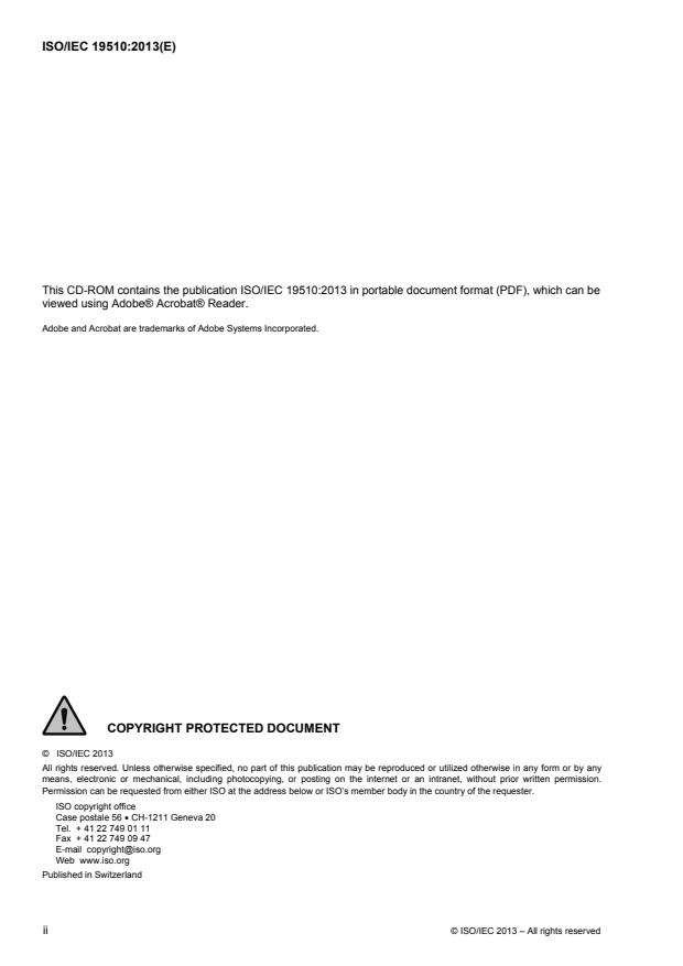 This CD-ROM contains the publication ISO/IEC 19510:2013 in portable document format (PDF), which can be