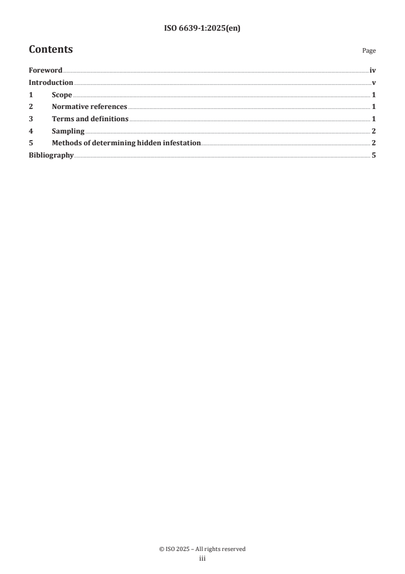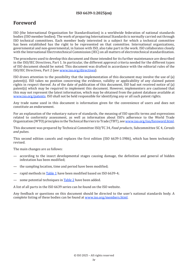 Keywords: ISO 6639-1:2025, hidden insect infestation, cereals and pulses, grain sampling, detection methods