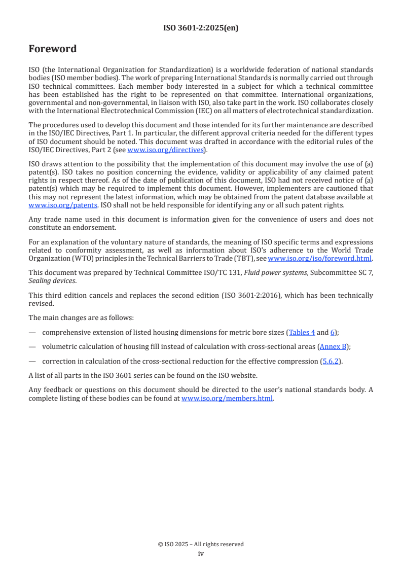 Keywords: ISO 3601-2:2025, O‑ring housing dimensions, fluid power systems, hydraulic seals, pneumatic seals, anti‑extrusion rings, groove design, surface roughness, housing fill.
