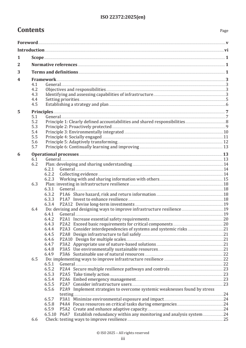This document provides guidelines for establishing, maintaining, monitoring and improving infrastructure resilience to help ensure the continuity and robustness of essential services. It supports collaborative decision-making across many stakeholders in diverse organizations. It can be used for engaging stakeholders at all levels responsible for, or having influence on, infrastructure resilience matters. This document is intended to be applicable to all types and sizes of organizations which have a role in infrastructure resilience.