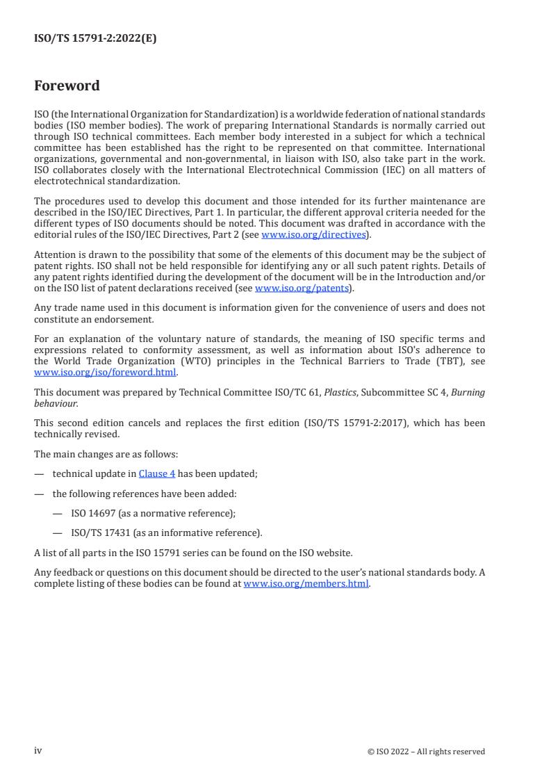 Keywords: ISO/TS 15791-2:2022, intermediate-scale fire tests, plastics, semi-finished products, finished products, specimen mounting, flame spread, reaction-to-fire, scaling studies.