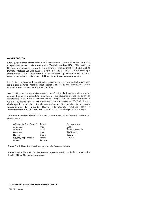 La Recommandation lSO/R 1815 avait été approuvée par les Comités Membres des