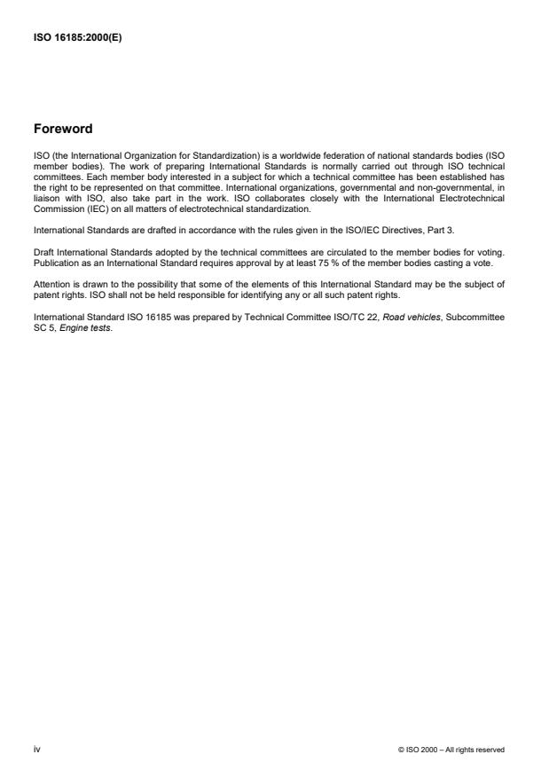 ISO 16185:2000 - Road vehicles -- Engine families for certification of heavy-duty vehicles by Exhaust emission