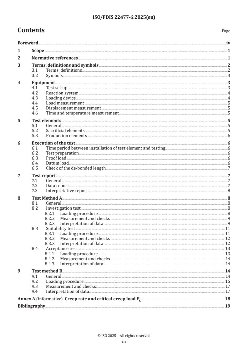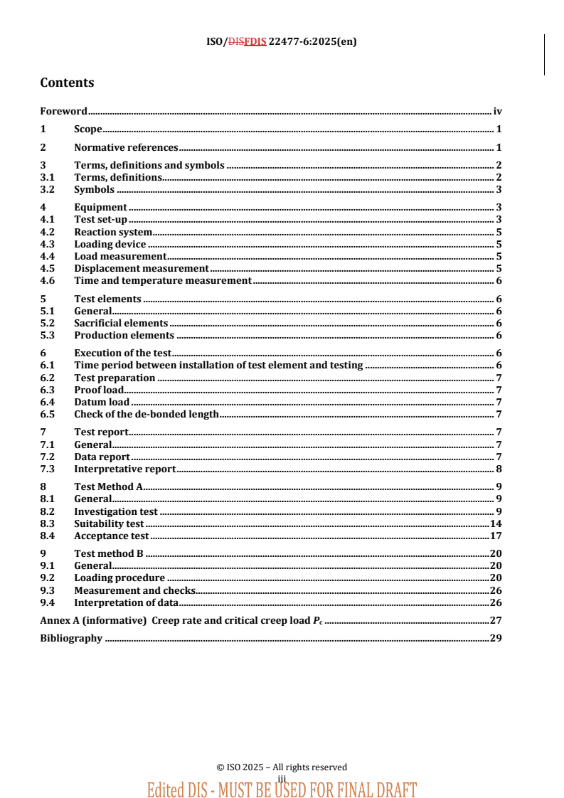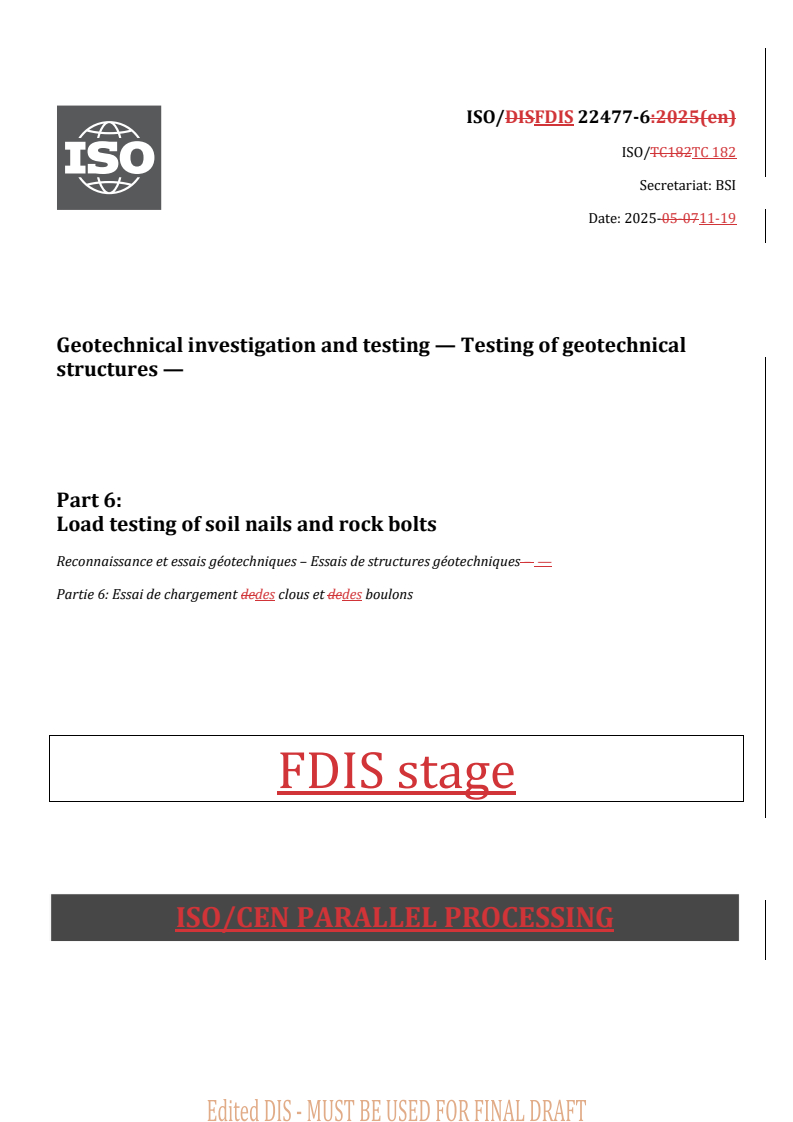 REDLINE ISO/FDIS 22477-6 - Geotechnical investigation and testing — Testing of geotechnical structures — Part 6: Load testing of soil nails and rock bolts Released:20. 11. 2025